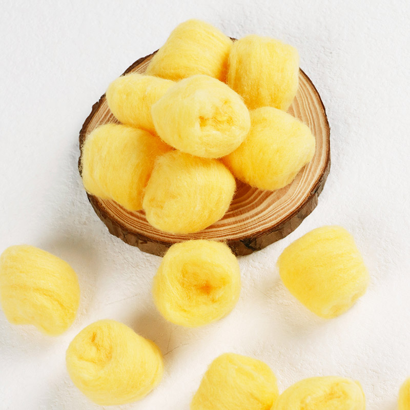 Colored cotton balls are lightweight and easy to handle. They are typically packaged in bags or containers, ensuring convenient storage and preserving their vibrant colors over time.